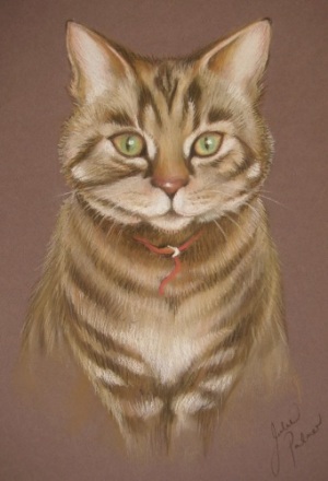 You will notice with the Shorthaired Tabby opposite that the collar has been added to the portrait. Some costumers prefer features like this to be included in the work, and there is space to request this on the ordering form. You may also which to consider if you would like your cats name on the portrait. |